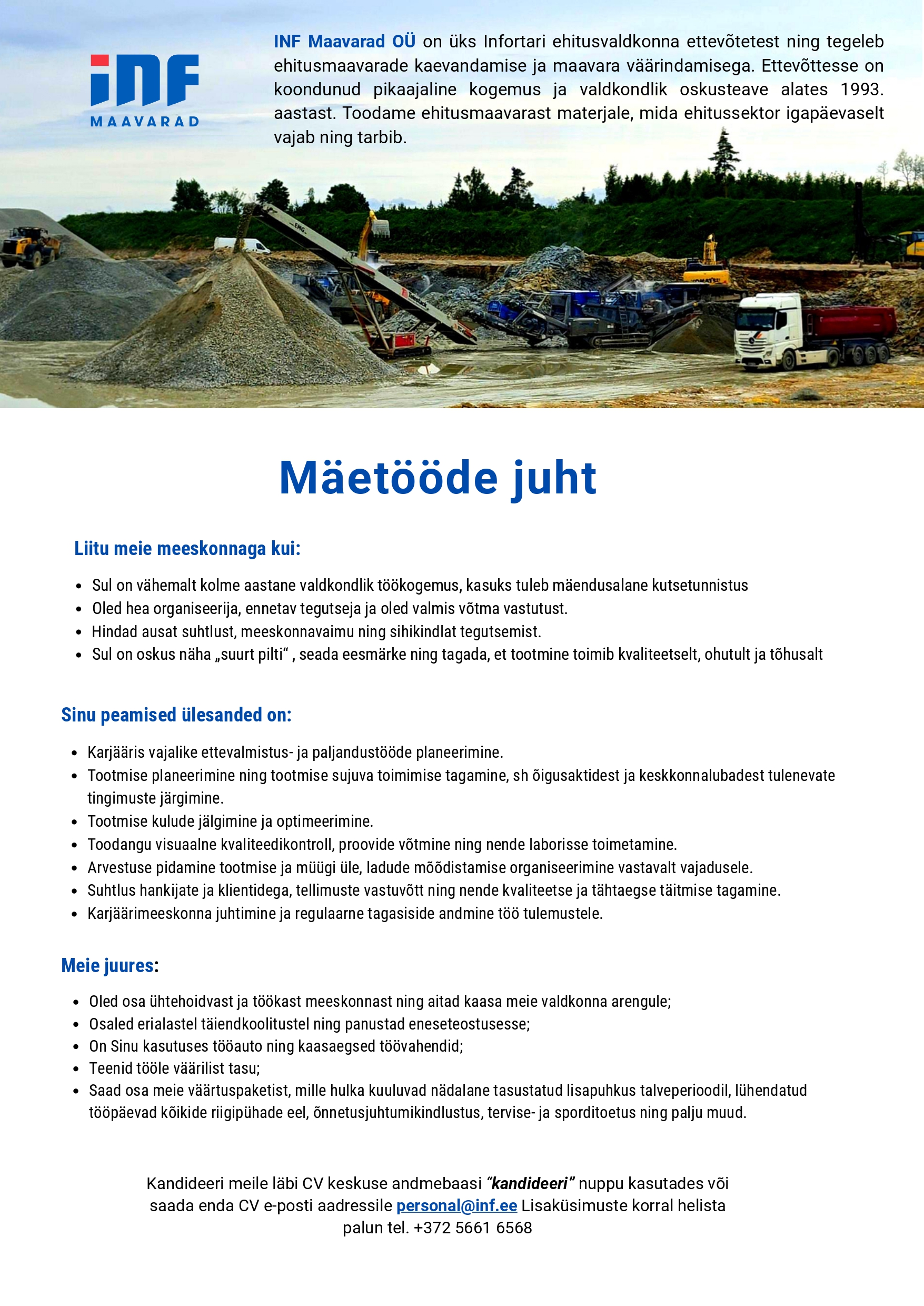 Pakume konkurentsivõimelist palka, paindlikku tööaega ja dünaamilist töökeskkonda.